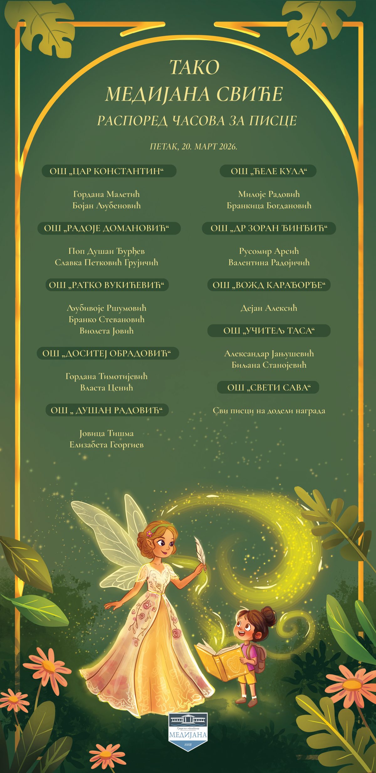 🔹 10.00 – Гостовање писаца у основним школама на подручју ГО Медијана